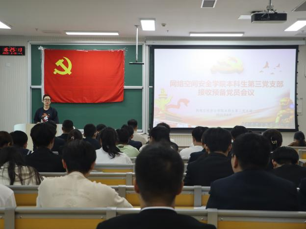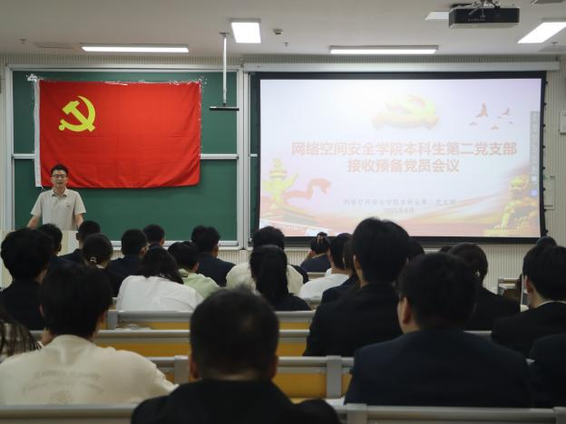 各本科生党支部第一议题学习了习近平总书记对精神文明建设工作作出的重要指示。随后,各本科生党支部分别召开了接收预备党员会议。全体党员同志起立,奏唱国际歌。发展对象依次上台宣读入党志愿书。在本科生第一党支部会议中,相青、赵兴卯两位老师介绍了党员发展对象的任职经历、学习成绩等基本情况。经组织考察,以上同志政审合格,武玉龙代表支委会同意将以上同志接收为预备党员。大会遵循无记名计票原则,经全体与会党员商讨,一致同意接收程名等同志为中共预备党员。