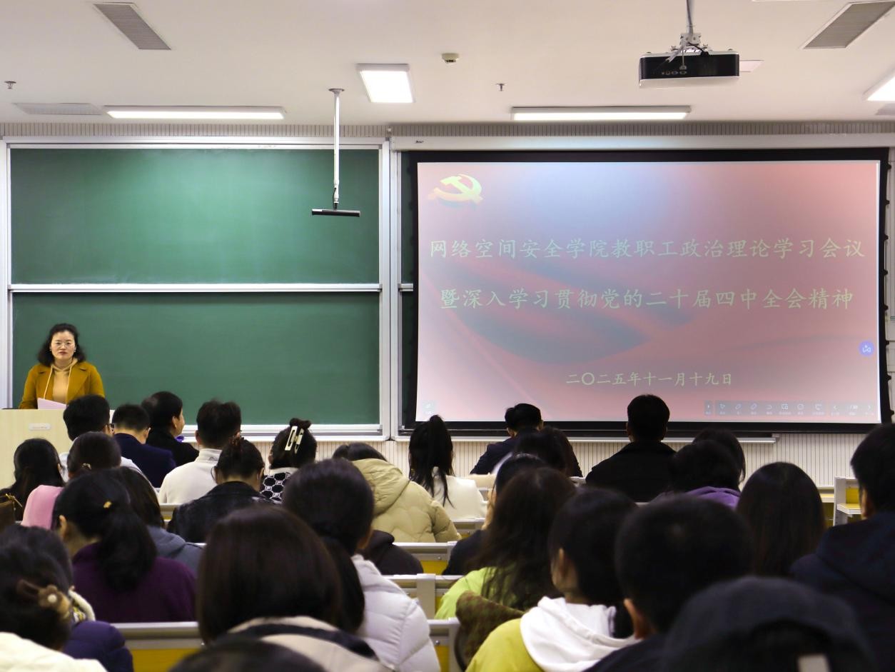 会议伊始,田云飞带领全体教职工学习了党的二十届四中全会精神,他强调:学习贯彻全会精神是当前和今后一个时期的重要政治任务,要深入学习贯彻党的二十届四中全会精神;在学科发展中,要把握市场需求与政府引导的平衡,既遵循学术规律,又紧扣国家网络安全战略需求;要以全会精神为指引,聚焦网络空间安全领域关键核心技术攻关,带领团队深耕细作,为实现高水平科技自立自强贡献学院力量;要结合专业特色,利用科学技术助力数字乡村建设,为乡村振兴筑牢网络安全屏障。