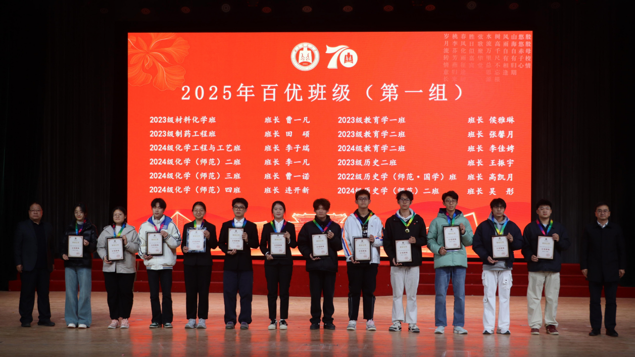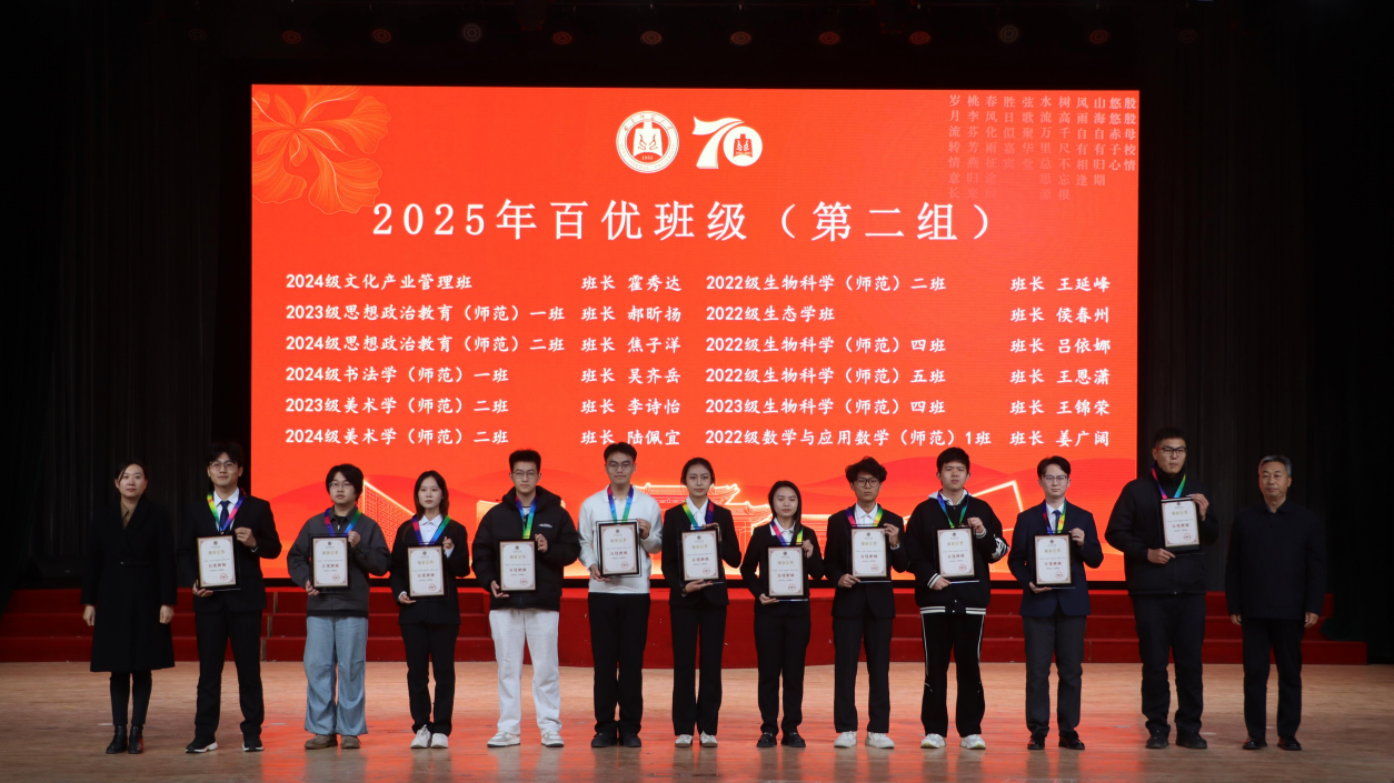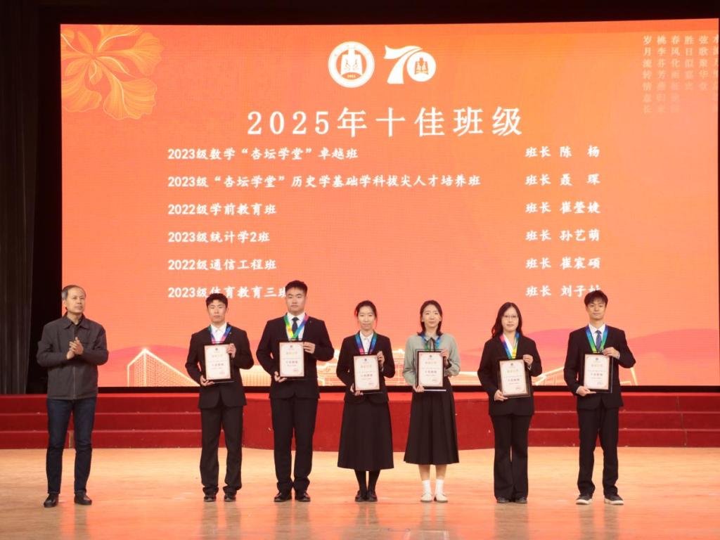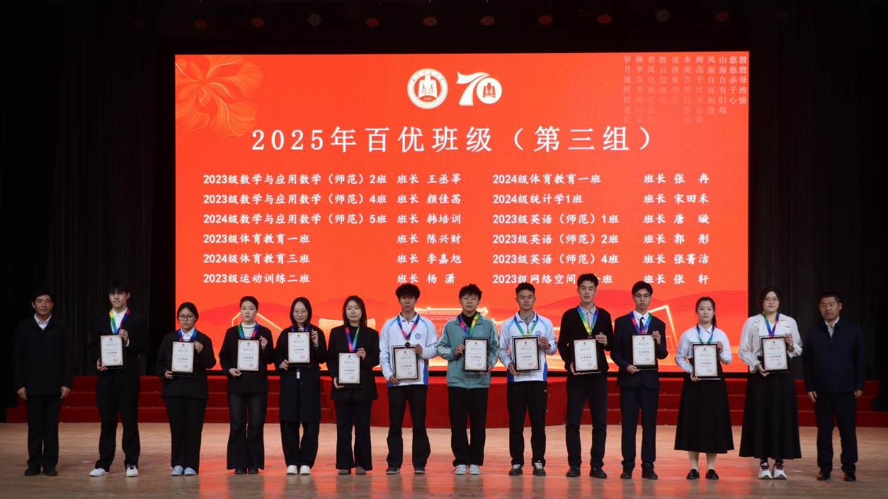 2022级通信工程班、体育科学学院2023级体育教育三班获得“十佳班级”荣誉称号。所在班级班长分别获得“十佳班长”“百优班长”荣誉称号。学生工作处处长姜美颖公布了十佳班级名单,党委副书记刘涛为十佳班级颁奖、各学院副书记为百优班级颁奖。