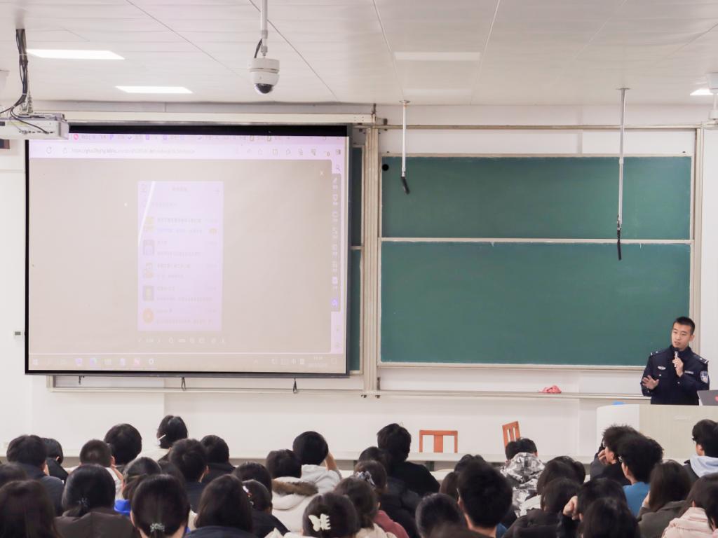 “解码诈骗技术套路,筑牢校园安全屏障”校园反诈宣传活动于综合楼501教室举办。活动特邀曲阜市公安局网安大队申明航警官担任主讲人。