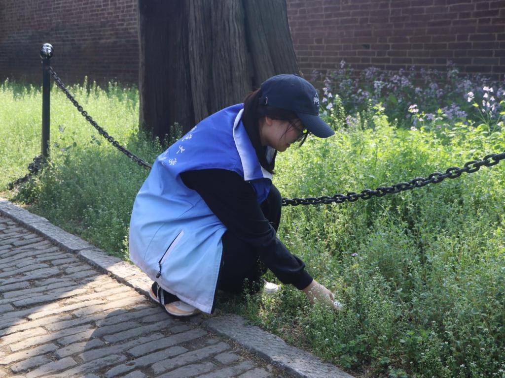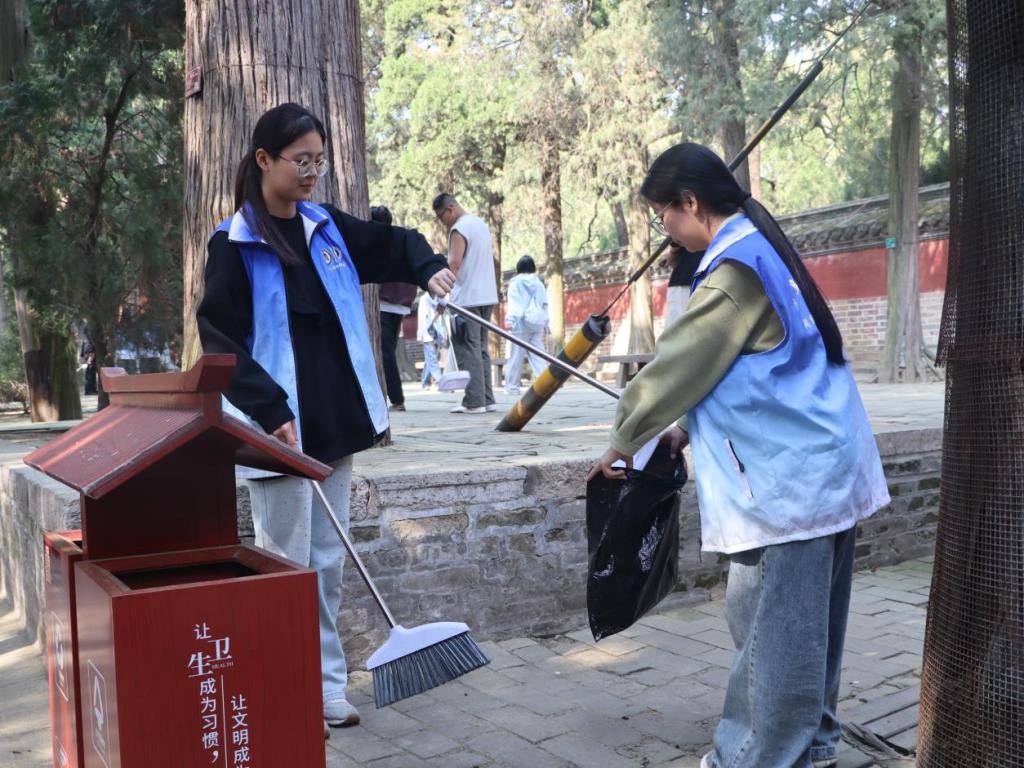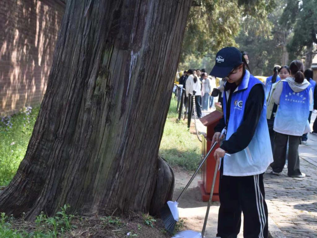 活动当日,志愿者统一集结,领取清洁工具。负责人就活动流程、注意事项、文物保护要求及任务分工作出详细说明。抵达孔林后,田保兵围绕孔林的历史沿革与文化内涵进行讲解,引导志愿者深入理解文化遗产的时代价值。志愿者们秉持对文物的敬畏之心与保护之责,手持扫帚、簸箕等工具,分工协作,对孔林路面、绿化带等区域的垃圾杂物进行全面清理。活动全程严格遵守文物保护准则,不触碰文物、不进入非指定区域,展现了曲师大学子良好的精神风貌。清扫结束后,志愿者有序整理工具、集中处理垃圾,经现场检查确认后统一返程,活动秩序井然。