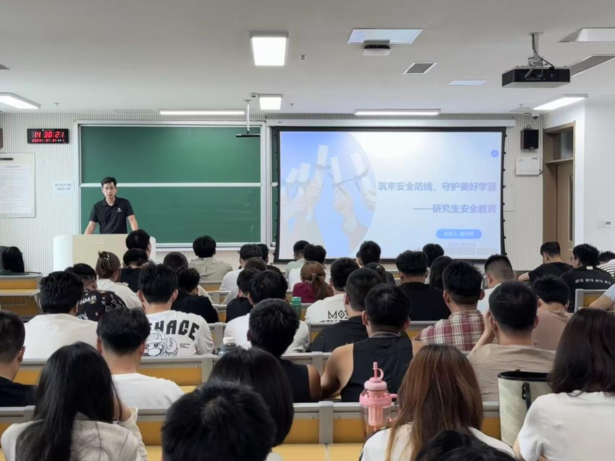 赵老师围绕宿舍安全、自习室用电安全、交通安全、网络安全等多个安全主题展开详细讲解。他结合具体案例,引导同学们树立正确的安全观念,掌握必要的安全知识和应急处理技能。赵老师指出,安全是开展一切科研与学习活动的基础,研究生作为科研创新的重要力量,更应将安全意识内化于心、外化于行。
