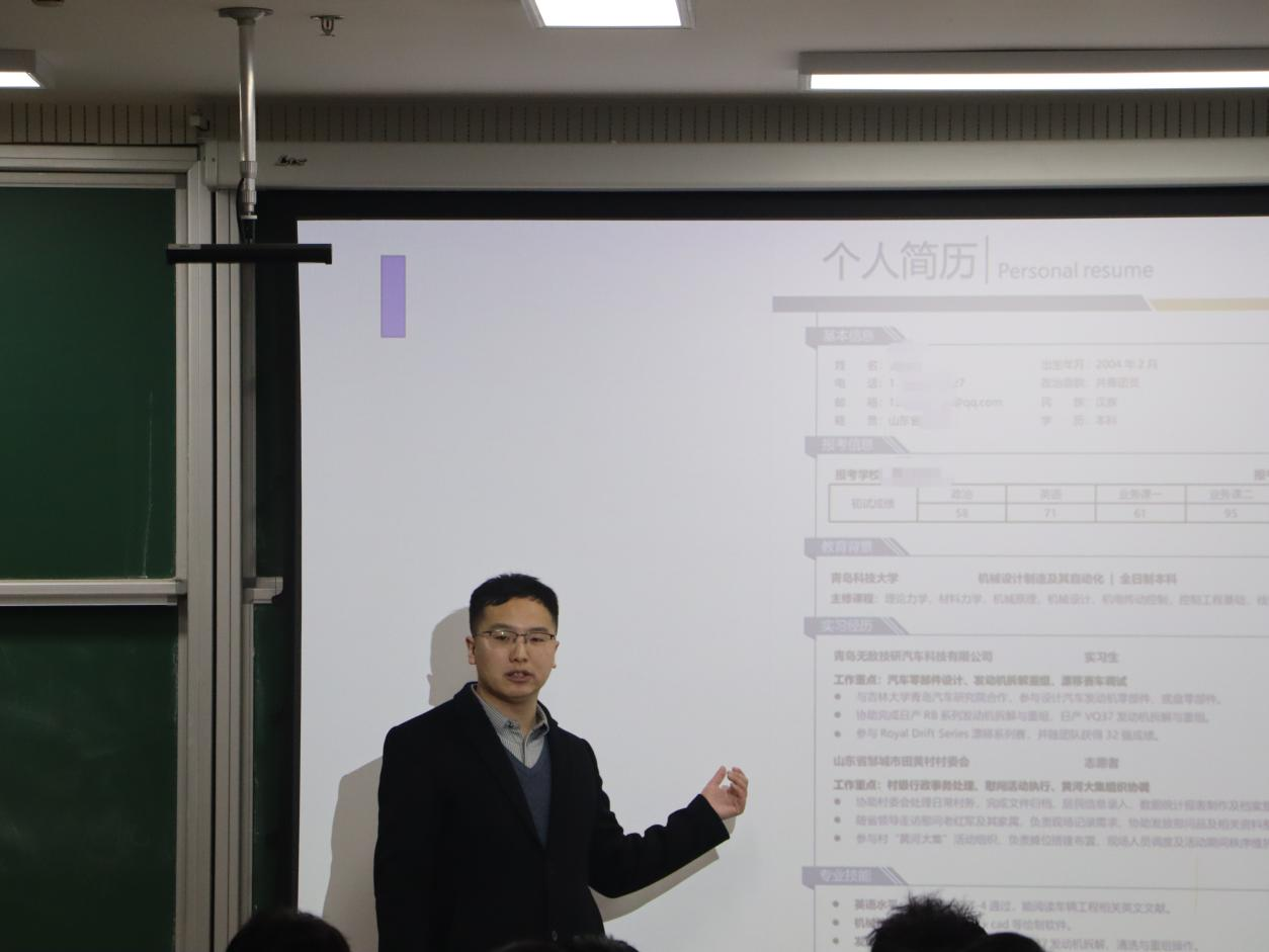 “逐梦研究生 开启人生新篇章”研究生复试调剂培训会议于格物楼B218教室顺利召开。辅导员相青出席会议,我院硕士研究生导师曹腾主讲,22级学生参加活动。