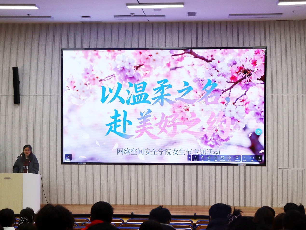 “三春芳菲月,礼赞佳人节”女生节主题活动于致知楼B201及各班晚自习教室顺利举办。学院团委学生会权益部部长张圣泉主持活动,2025级全体同学参加。